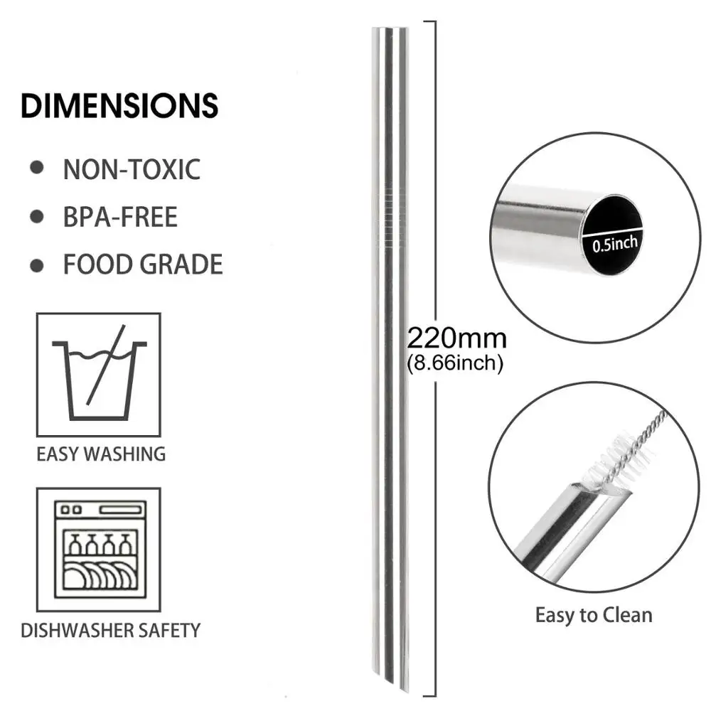 REVIEW TOP SELLER FUHAIHE Wholesale 50/100Pack 304 Stainless Steel 12mm Drinking Straw Pearl Milkshake Fat Bubble Tea