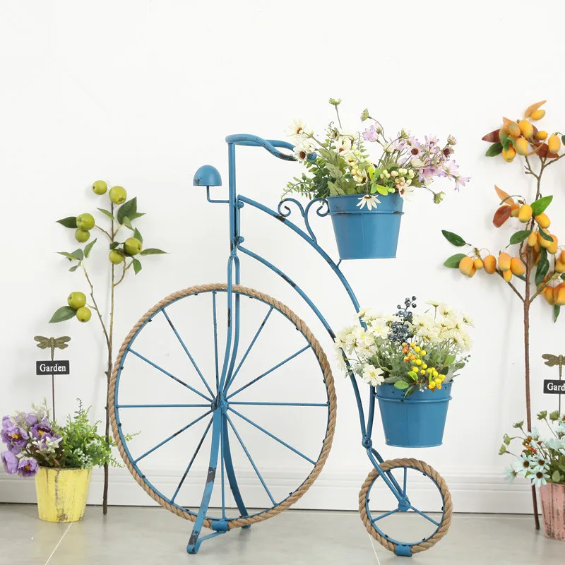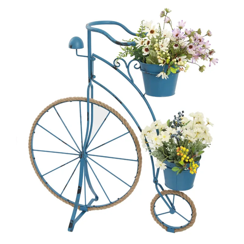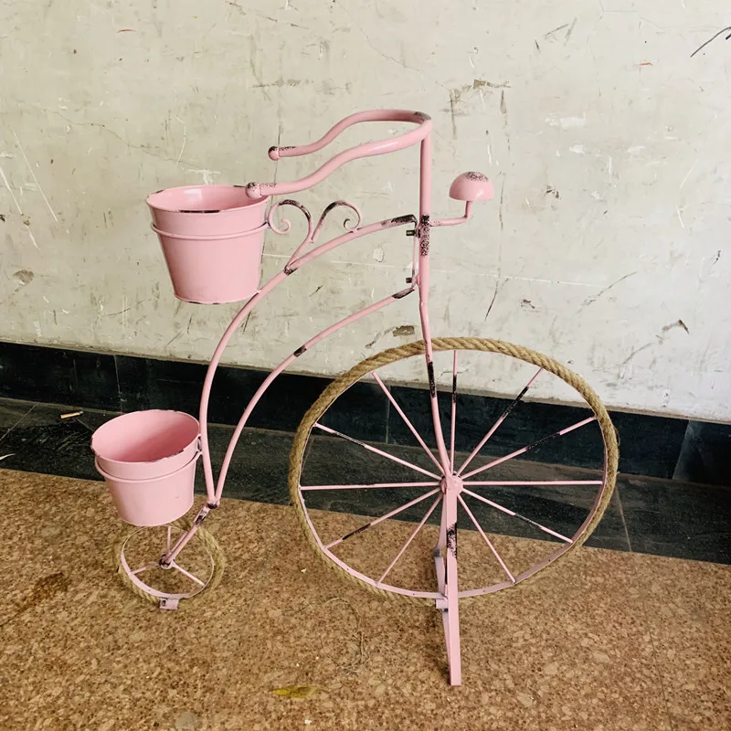 Best Quality Rural retro creative Hemp rope iron bicycle styling flower stand gardening window decoration Balcon
