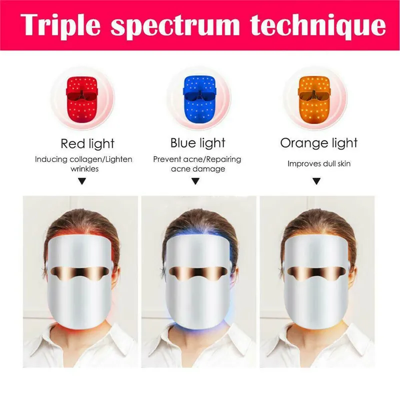 LED Facial Mask Therapy 3 Color LED Photon Electric Face Mask Machine Skin Care Rejuvenation Therap